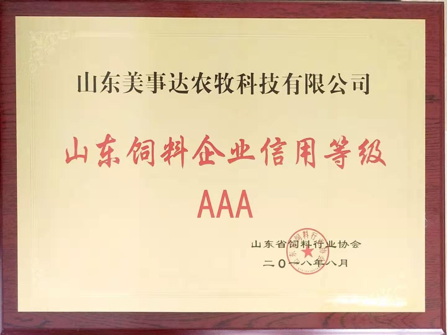 熱烈祝賀我公司被授予山東省飼料行業(yè)協(xié)會(huì)理事單位/山東飼料企業(yè)信用等級(jí)AAA。