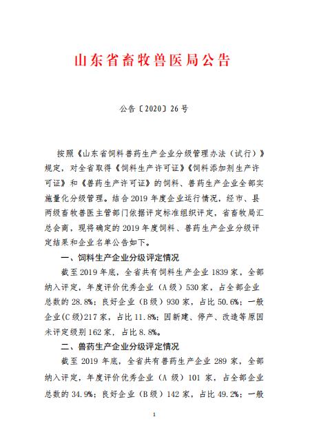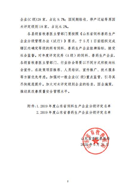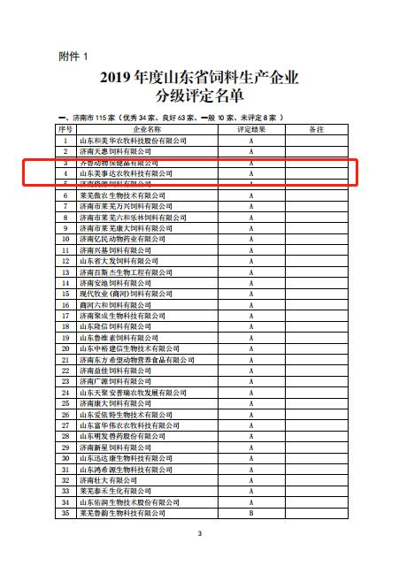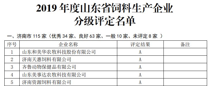 ? ? ? 隨著山東省畜牧獸醫局2019年對飼料、獸藥生產企業的分級評定結果的公示,山東美事達農牧科技有限公司再次上榜年度評價優秀企業(A級)。